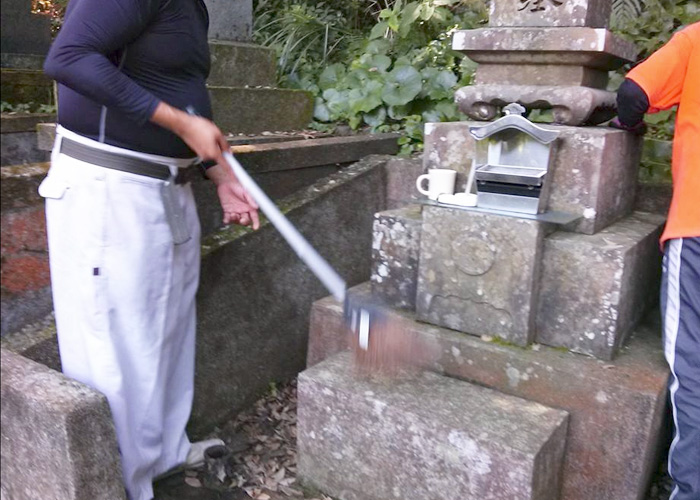 室内作業は牡蠣殻肥料作り、外作業では漁網清掃、お墓掃除や草刈りなどを行っています。お墓掃除では佐伯市内にお墓のある方で、身体的な理由やご家庭の都合でお墓の管理にお困りの方に代わってお墓の掃除や、献花を代行して行います。